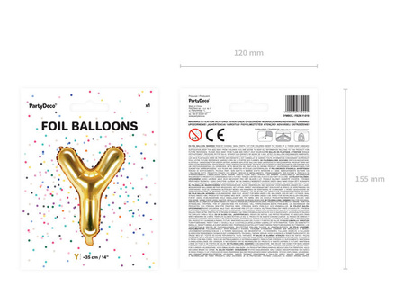 Balon foliowy metalizowany Litera Y w kolorze złotym, wysokość ok. 35 cm (14).